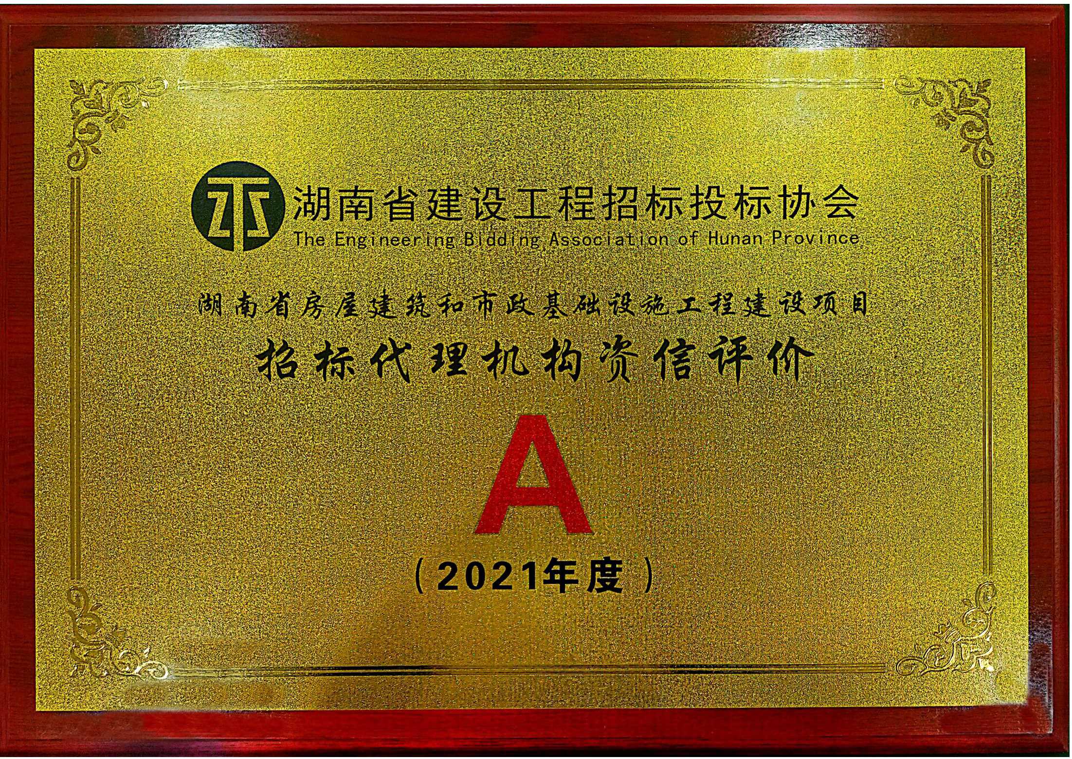 湖南省建设工程招标投标协会A级资信评价(2021年)