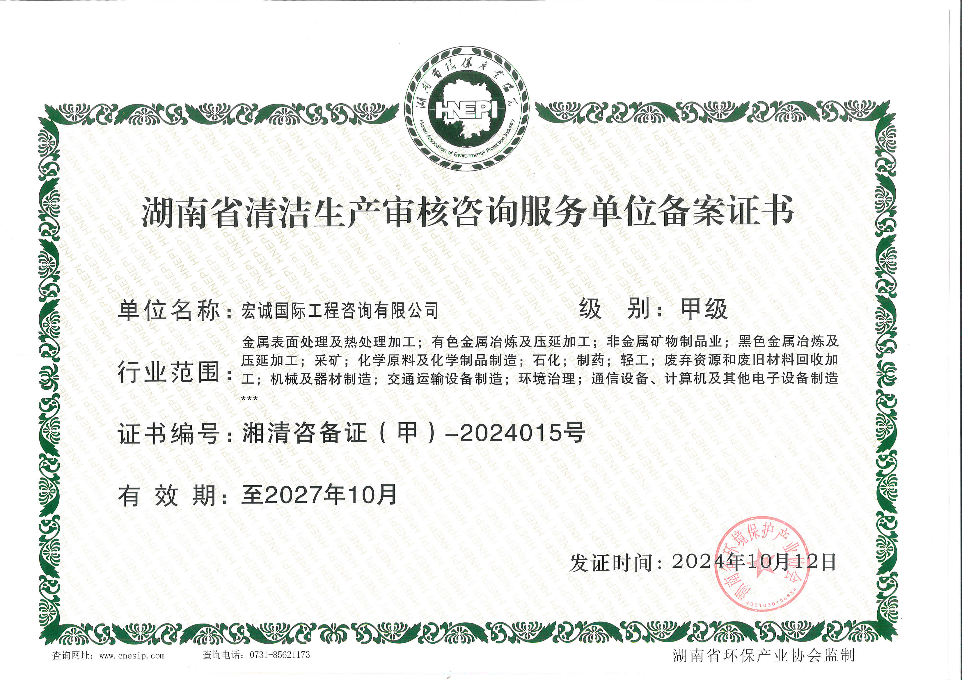 清洁生产审核甲级备案正本(有效期至2027.10)